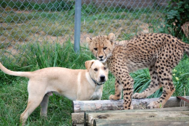 This 10-week-old baby cheetah also gets his companion and an adorable 7-week-old puppy when he needs it most. Because Emmett (the little name) is too shy, she gets a Cullen, a small emotional support dog. A friendship develops between the two. They grow up happy and healthy with each other.